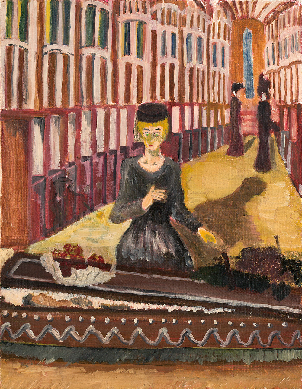 葬儀の場で悲しみをこらえようとする若い女性が描かれたこの作品で画家は、喪失と魂の傷というテーマを強調している。