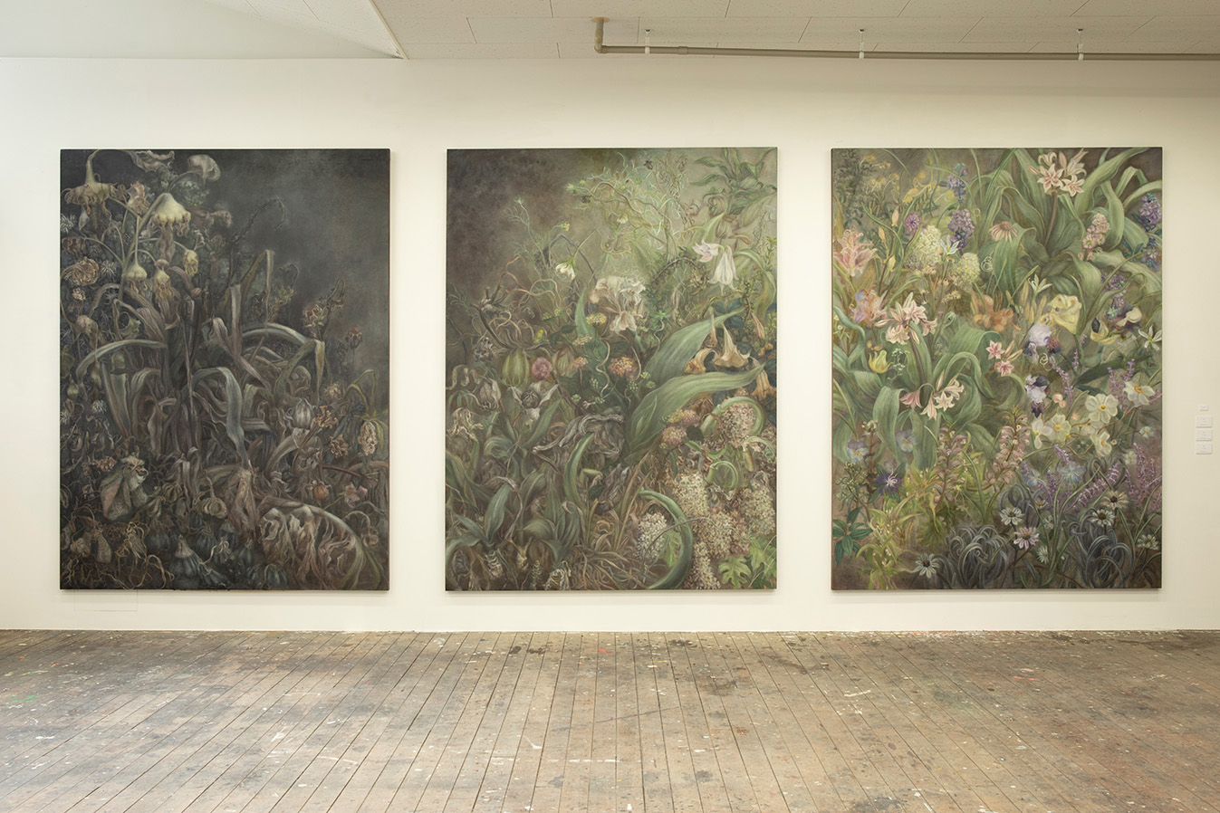 油絵学科 油絵専攻 井下紗希 (左から)《這う》《知る》《漲る》 油絵具/キャンバス 各H2590×W1940mm