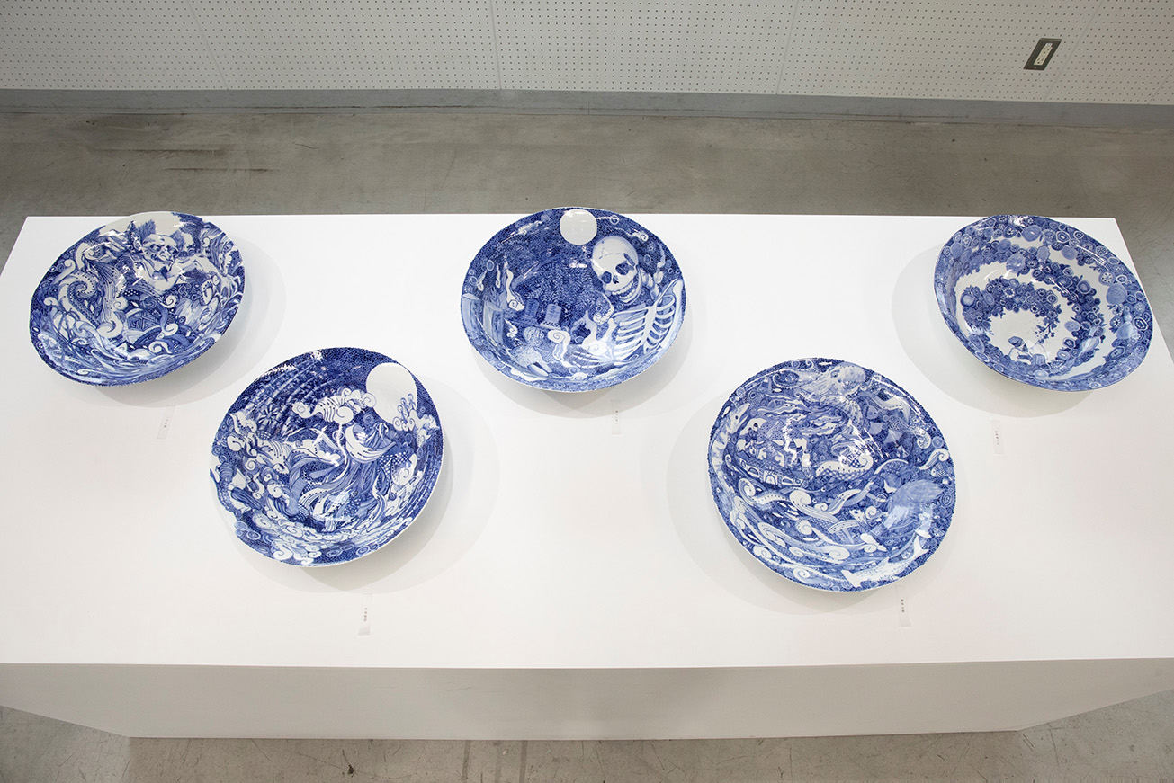 工芸工業デザイン学科 坂川ひかり 《絵付大鉢》 ろくろ成形、染付:有田白磁 H150×φ300mm×5点