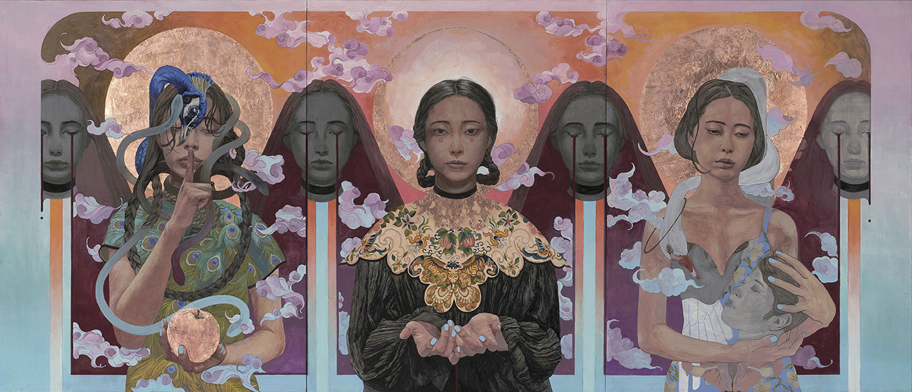 絵画学科日本画専攻 袴田真子《Ma femme fatale》 岩絵具、箔、水干/吉祥麻紙 H1260×W2940mm