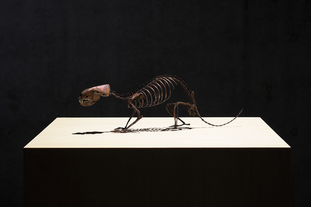 彫刻学科 佟昊霖 《フェレット》 鍛金、鋳金、りん銅ロウ付け:銅、錫 H15×W40×D15cm