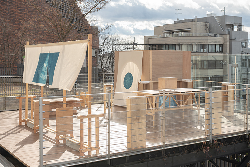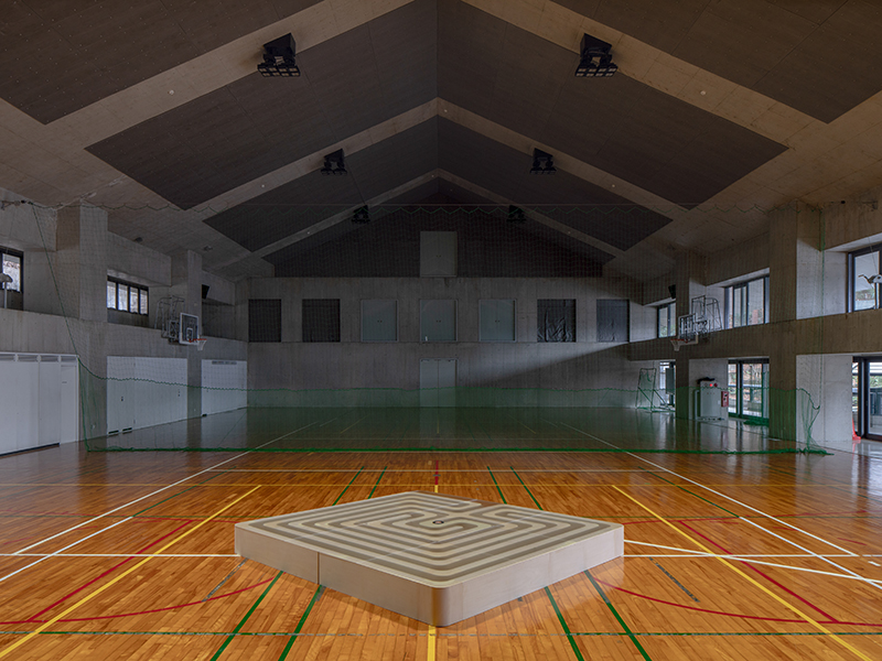 外部の美術館を利用する展示とは異なり、キャンパスを駆使した展示では、教室や体育館、テラスなど様々なスペースの特性を活かした作品プランを練ることができ、柔軟で大胆な展示設営が可能となる。
