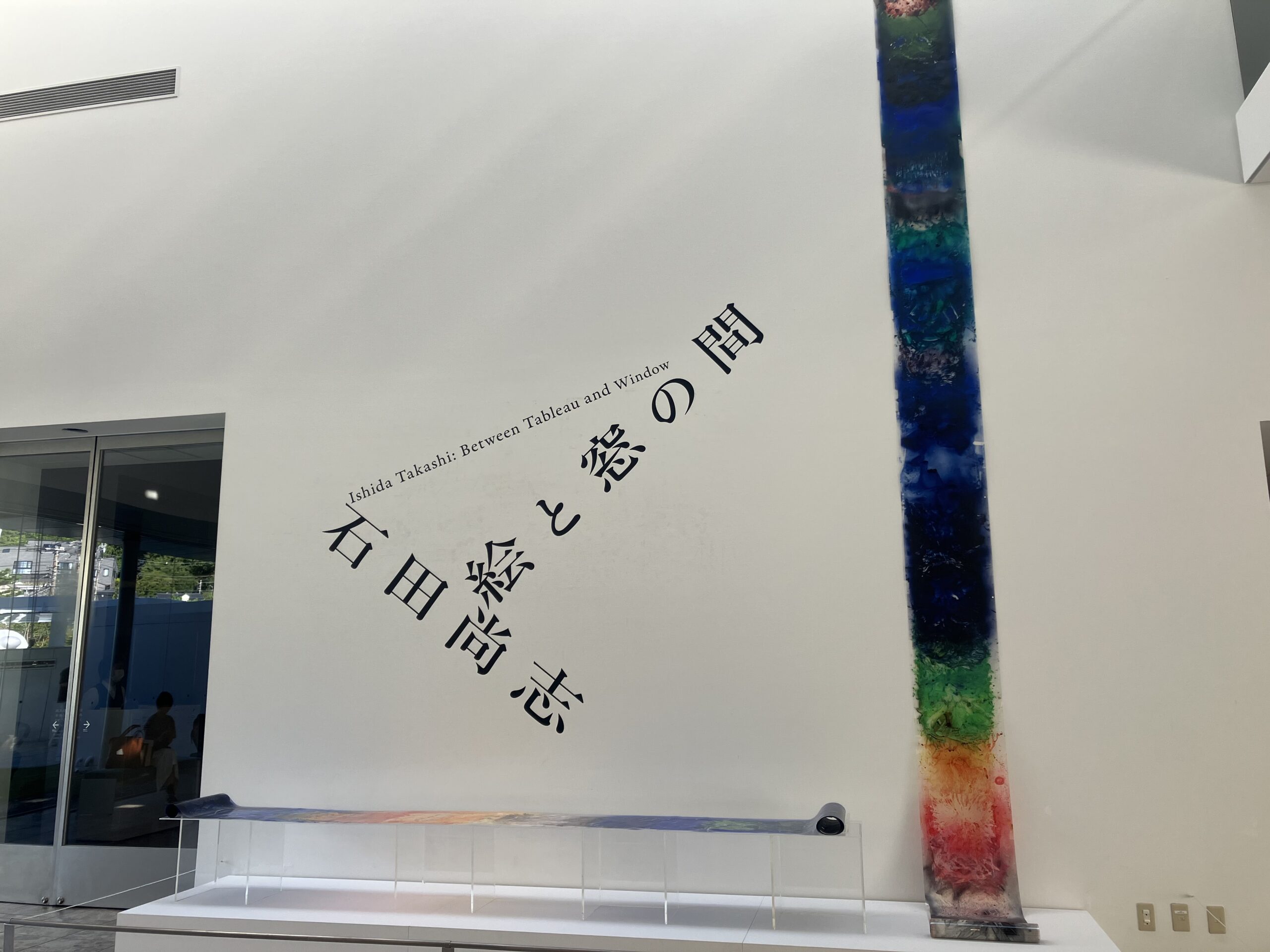 石田作品と葉山館との相性はとてもよく、空間の中に絵があるということでより空間が協調され、動くという単純な喜びや、1コマずつが重なりゆく時間芸術の映像の驚きが、美術館の大きな窓の外に広がる海と呼応し、まさに「絵と窓の間」という世界を生み出していたように思う。