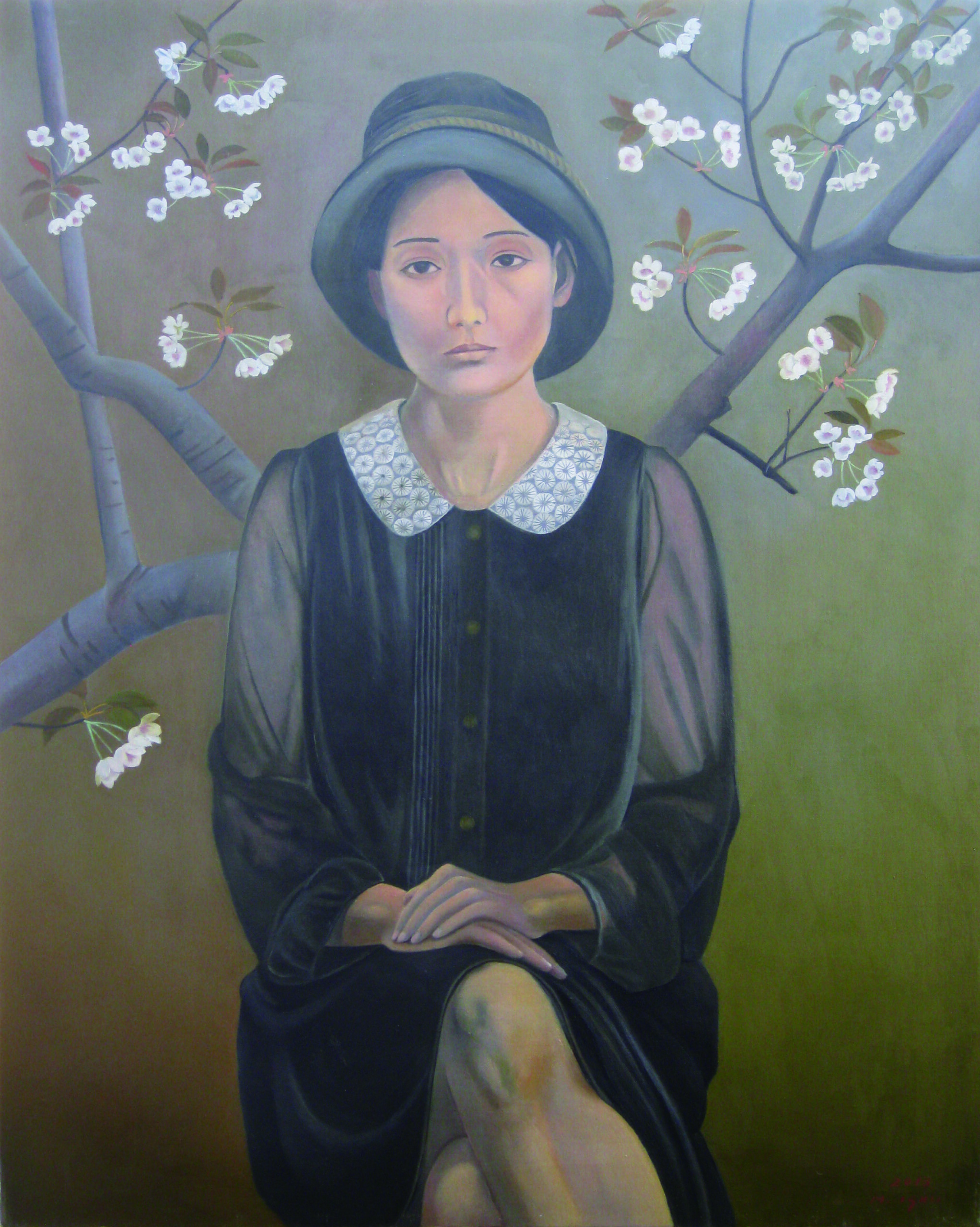 構図は見事な均衡を示しており、パステルを思わせる柔らかで洗練された色遣いが、幽玄な雰囲気を醸し出している。その色彩と陰影のある輪郭が深みと写実性を添えながら、ほのかな神秘性をも感じさせるからだ。山櫻と女性というモチーフは、結合と相補性に関する哲学的な側面をも暗示している。