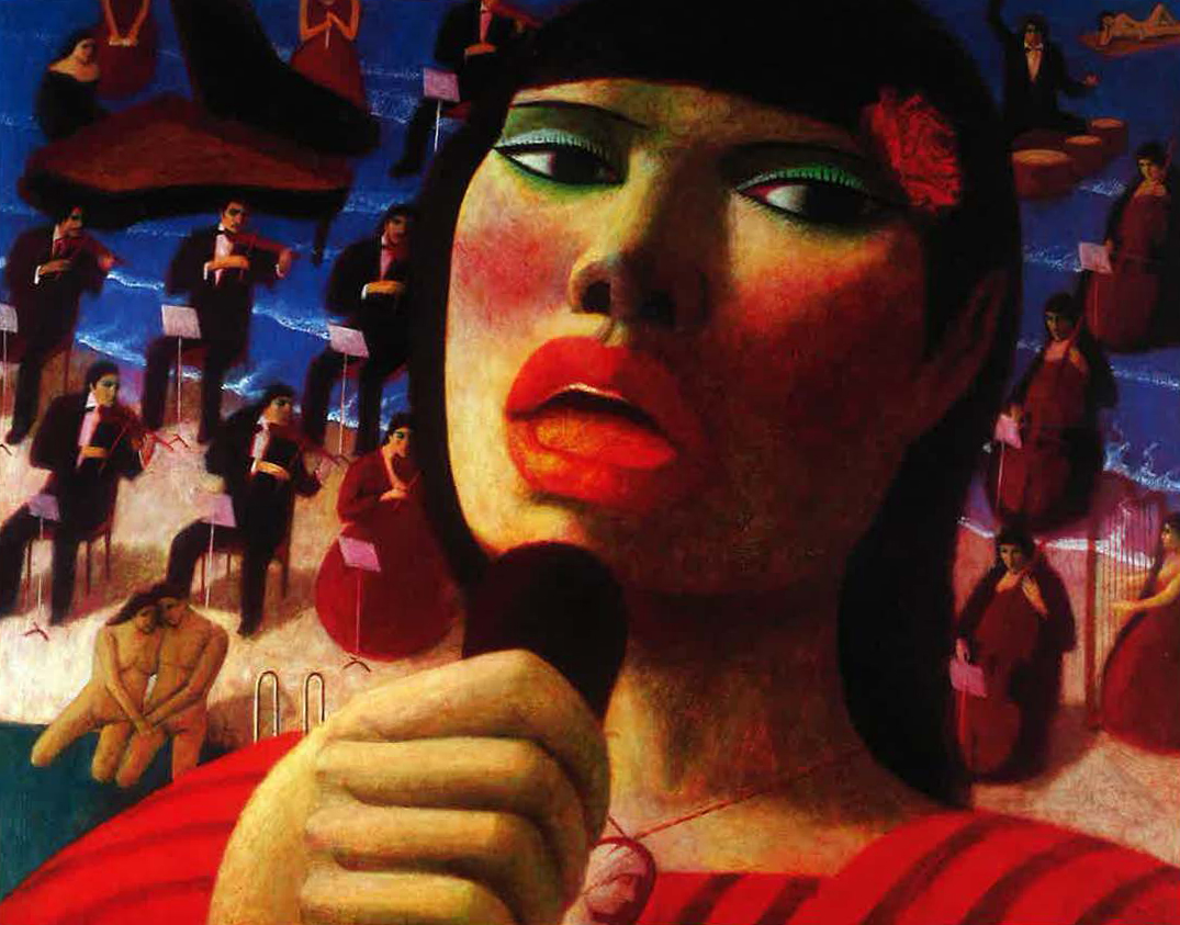 ある時、横尾氏が小生のアトリヱの本棚に三島由紀夫だらけなのに気づき廊下の共同電話に向かって叫んでいるのが聞こえた。「もしもし三島さんですか、パーティーには家内と出かけますのでよろしく」このようなスタンドプレーが大好きなのが横尾忠則だ。