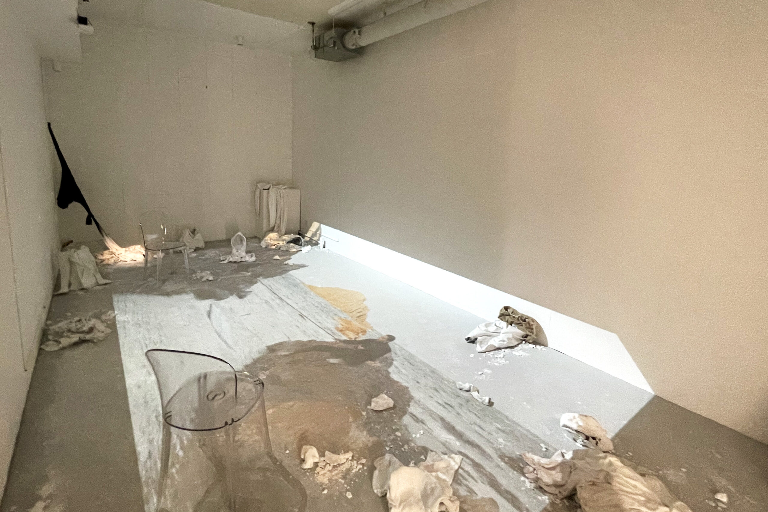 室内に木材で箱を作り、その中に自身の作品を点在させたいとのこと。箱の中には鑑賞者も入ることができ、床や壁に穴が開いているなどの仕掛けもあるそうだ。