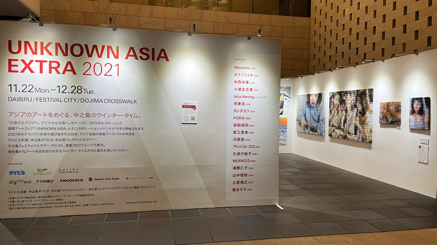 アーテイストの多様性を認め合い、創造の可能性を広げる国際アートフェア「紀陽銀行presents UNKNOWN ASIA 2021」。アジア各国からアーティストが大阪に集い、鑑賞者やコレクターとの交流を通じ新たなクリエイティブシーンを生み出し続けているこのイベントは、アーテイスト主体のアートフェアとして2015年にスタートし、2021年で7回目を迎えました。2020年は新型コロナウイルス感染症の影響で、独自にオンラインアートフェアシステムを構築して開催。今年はそのオンラインと実会場の展示を組み合わせたハイブリッドなアートフェアとして進化しました。