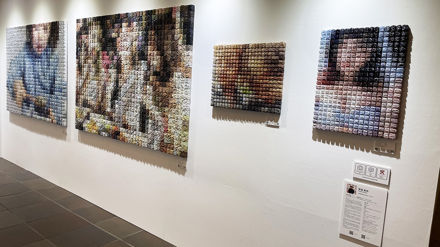 遠くから観ると解像度の低いデジタル画像のように見えますが、近づいてみると、表面にはチューブから直接しぼり出したかのような絵具の立体感があり、見る角度や近さによって視認できる像が異なることを体感でき、そのことが作品テーマの裏付けにもなっていた点が面白く感じました。